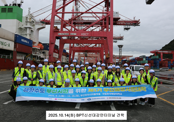 신선대감만터미널㈜(대표이사 이정행)는 14일 제1기 부산해양시민대학 학생들을 대상으로 회사 소개와 부산항 북항의 중요성에 대한 설명, 그리고 현장 견학 프로그램을 진행했다.