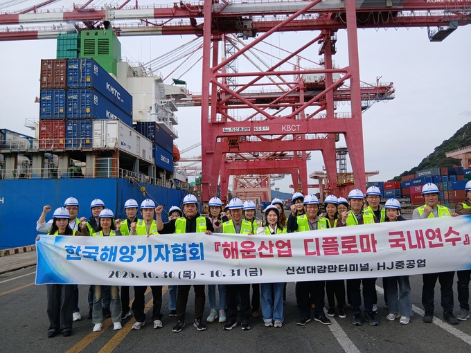 <한국해양기자협회 소속 기자 24명은 국내외 해양산업 현장 방문을 통한 디플로마 과정을 위해 지난 30일 이틀 일정으로 부산을 찾았다. 30일 부산 북항의 신선대감만터미널을 견학하고, 이어 부산항 선상 투어를 실시했다. 31일에는 한국 최초의 조선소인 부산 영도의 HJ중공업을 찾아 현장을 체감하고 설명을 들었다. 이를 2회에 걸쳐 연재한다.>
