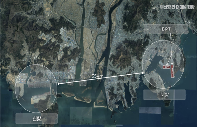 부산역에서 차로 20여 분 서쪽으로 달리면 영도를 사이에 두고 바다 건너편에 컨테이너가 빼곡히 쌓인 신선대감만터미널(BPT)이 모습을 드러낸다. 부산 북항에 위치한 신선대와 감만은 원래 별개 부두였지만 우여곡절 끝에 현재의 단일 운영 체계를 갖췄다.